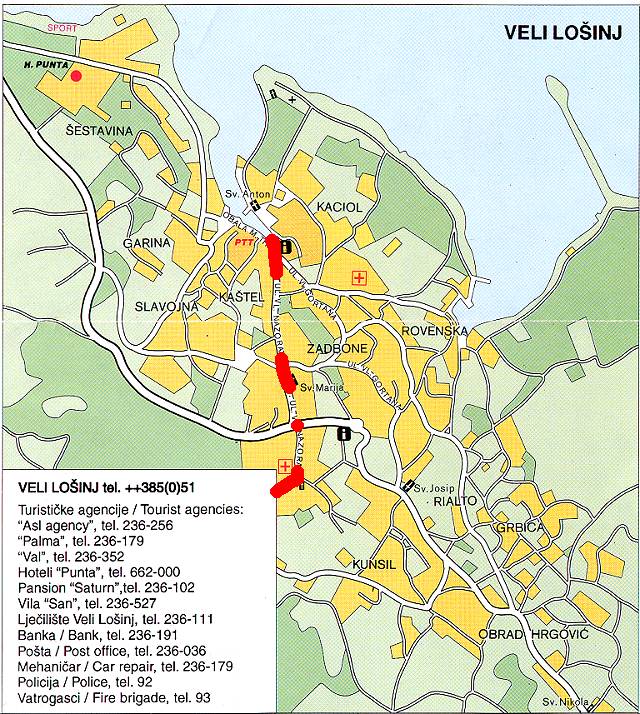 | 21.05.2004, 14:06 Uhr stefan Posts: 283 [Administrator] Extra: webmaster | Hallo Sveni, die Straße V. Nazora müßte die Straße, sein, die vom Hafen aus nach oben in den Ort führt. Ich habe zwei Stadtpläne eingescannt: und und auf dem zweiten Stadtplan die Straße rot markiert. Du kannst die Stadtpläne in großer Auflösung auch unter folgenden Link anschauen: Stadtplan 1 - Großansicht Ich hoffe, das hilft erst man weiter. Das Appartement dürfte aber nicht so schwer zu finden sein. Du fährst einfach nach Veli Losinj, bis es nicht mehr weiter geht. Die Straße endet in Veli Losinj auf einem großen Parkplatz ... und da müßtest Du schon in der gesuchten Straße sein. Schönen Urlaub Stadtplan 2 - Großansicht Stefan [ Dieser Beitrag wurde von stefan am 21.05.2004 editiert. ] [ Zitatantwort - edit ] |