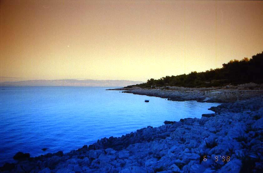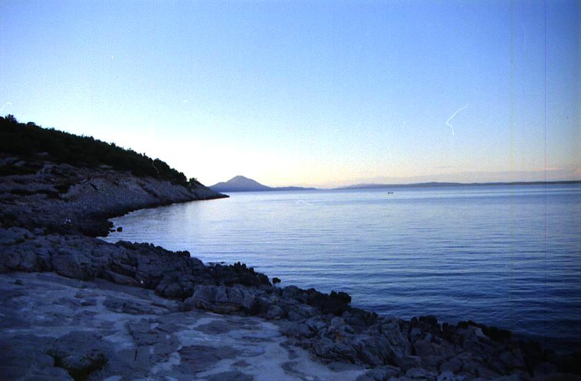 Unsere Badebucht unweit der Straße Nikola Tesle am Abend. Hier (und auf ein paar Bildern über Veli Losinj) habe ich ein bißchen mit Blau- und Tabakverlauffiltern experiementiert.
